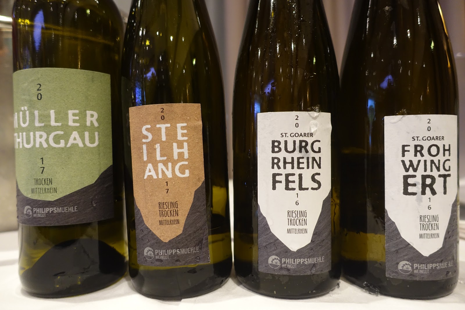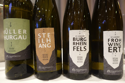 Two of the wine estates - Weingut Toni Jost from Bacharach (Cecilia Jost) and Weingut Matthias Müller (Johannes Müller) - were members of the VDP, the association of Germany's about 200 elite winemakers, and two wine estates - Weingut Philipps-Mühle in St. Goar (Thomas and Martin Philipps) and Weingut Heilig Grab from Boppard (Jonas Schoenberger) - were up-and-coming producers.