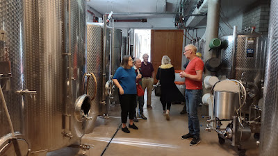 Elisabeth tasted with us a sparkling wine in the wine cellar, presented her wine portfolio in the new tasting room and at the end of the visit took us to the vineyards.